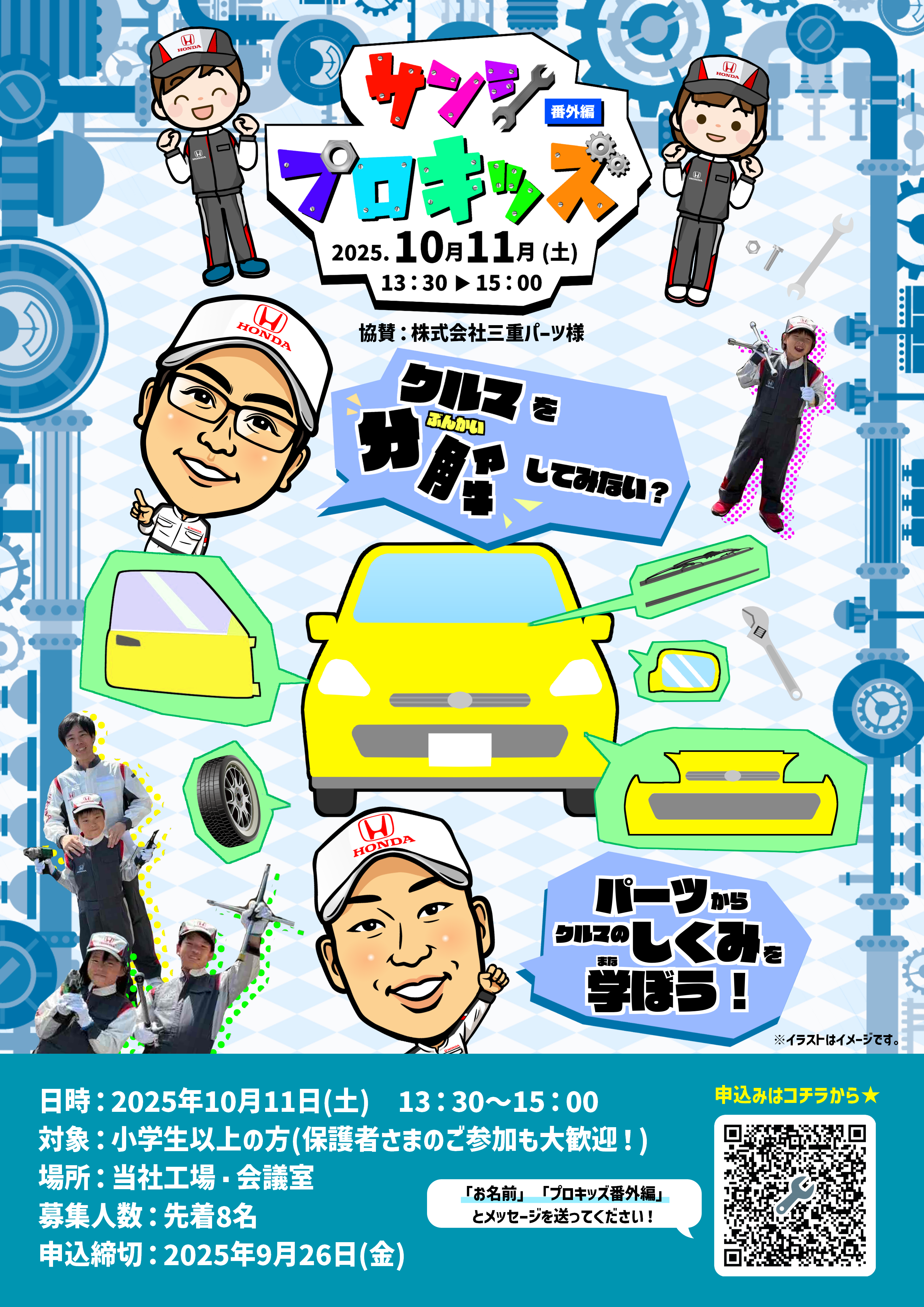 ホーム » BLOG » イベント » SANSHIプロキッズ番外編~クルマを分解してみない?~